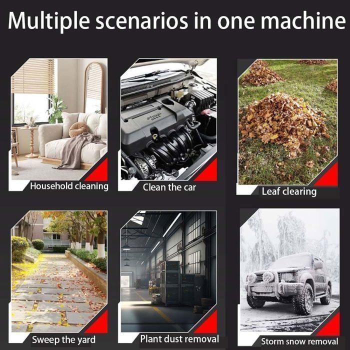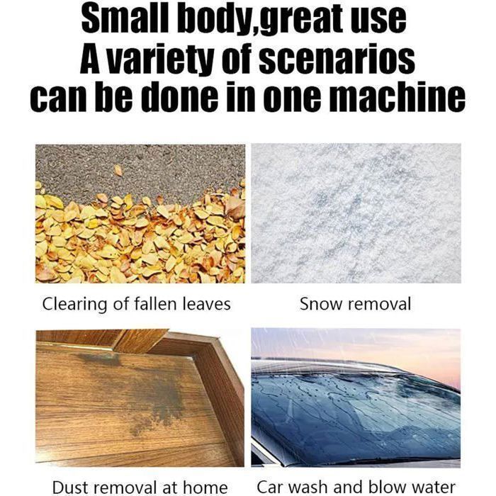 - Design léger et facile à transporter : le souffleur portable sans fil peut être facilement transporté et vous permet de nettoyer les zones difficiles d’accès sans aucune restriction.